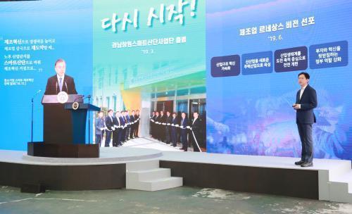 ±è°æ¼ö Áö»ç´Â ¡®4¸¸ºÒ ½Ã´ë ¼±µµ ½º¸¶Æ®±×¸°»ê´Ü, °æ³²Ã¢¿ø½º¸¶Æ®»ê´Ü 1³â 6°³¿ùÀÇ º¯È¡¯¶ó´Â ÁÖÁ¦·Î ÁøÇàÇÑ ÇÁ¸®Á¨Å×À̼ǿ¡¼ ¡°Áö³ 2018³â 12¿ù ¹®ÀçÀÎ ´ëÅë·ÉÀÌ Ã¢¿øÀ» Á÷Á¢ ã¾Æ ´ëÇѹα¹ Á¦Á¶¾÷ÀÇ Èñ¸ÁÀ» ½º¸¶Æ®Á¦Á¶Çõ½ÅÀ» ÅëÇØ ¸¸µé¾î°¡°Ú´Ù¡±°í ¹àÈù »ç½ÇÀ» »ó±â½ÃŰ¸ç ¡°Ã¢¿ø±¹°¡»ê´ÜÀÇ »õ·Î¿î ±âȸ¸¦ ¸¸µé¾î ÁØ ´ëÅë·É²² °¨»çÇÏ´Ù¡±°í ¸»Çß´Ù.