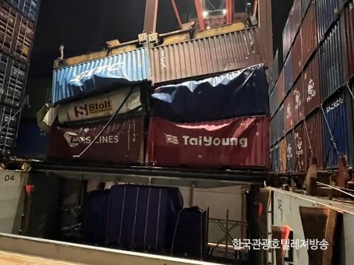 [È£ÅÚ°ü±¤·¹Á®½Å¹®´º½º=ÀÌÁö¿ø ±âÀÚ] ¿©¼öÇØ¾ç°æÂû¼­´Â ¡°±¤¾çÇ× ÄÁÅ×À̳ʺεο¡ Á¤¹ÚÁßÀÎ ¼±¹Ú¿¡¼­ À¯Çؾ×ü¹°ÁúÀÇ ÀϺΰ¡ ¼±¹Ú³»·Î À¯ÃâµÆ´Ù¡±°í ¹àÇû½À´Ï´Ù.