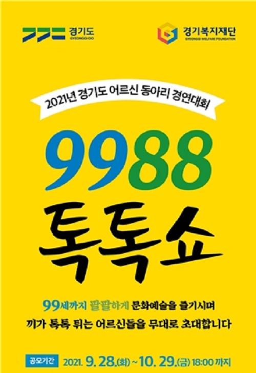 [È£ÅÚ°ü±¤·¹Á®½Å¹®´º½º=¹èÁöÀ± ±âÀÚ] °æ±âµµ°¡ ¾î¸£½Å µ¿¾Æ¸® °æ¿¬´ëȸ ¡®9988ÅåÅå¼î¡¯ ¿Â¶óÀÎ Âü°¡ Á¢¼ö¸¦ 10¿ù 18ÀϺÎÅÍ 29ÀϱîÁö ÁøÇàÇÕ´Ï´Ù. 2016³âºÎÅÍ ½ÃÀ۵Š¿ÃÇØ·Î 6ȸ°¸¦ ¸Â´Â ¡®9988ÅåÅå¼î¡¯´Â ¡®99¼¼±îÁö ÆÈÆÈÇÏ°Ô ¹®È­¿©°¡È°µ¿À» Áñ±âÀÚ¡¯¶ó´Â ¶æÀ» ´ã¡¦